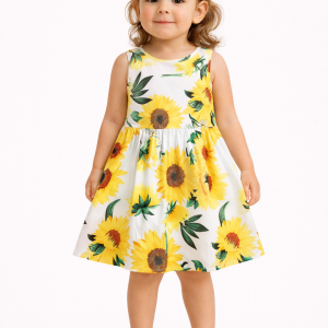 Vestido con estampado de cuerda vinculante para niñas de vestido veraniego sin mangas de algodón